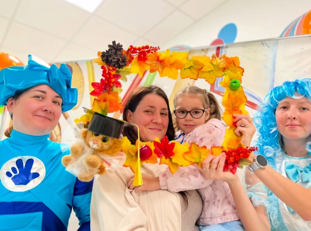 Праздничным утром ребят и их родителей встречали веселые сказочные герои- Мальвина и Незнайка. А Симка и Нолик устроили музыкальное развлечение с веселыми играми, загадками и танцами.
