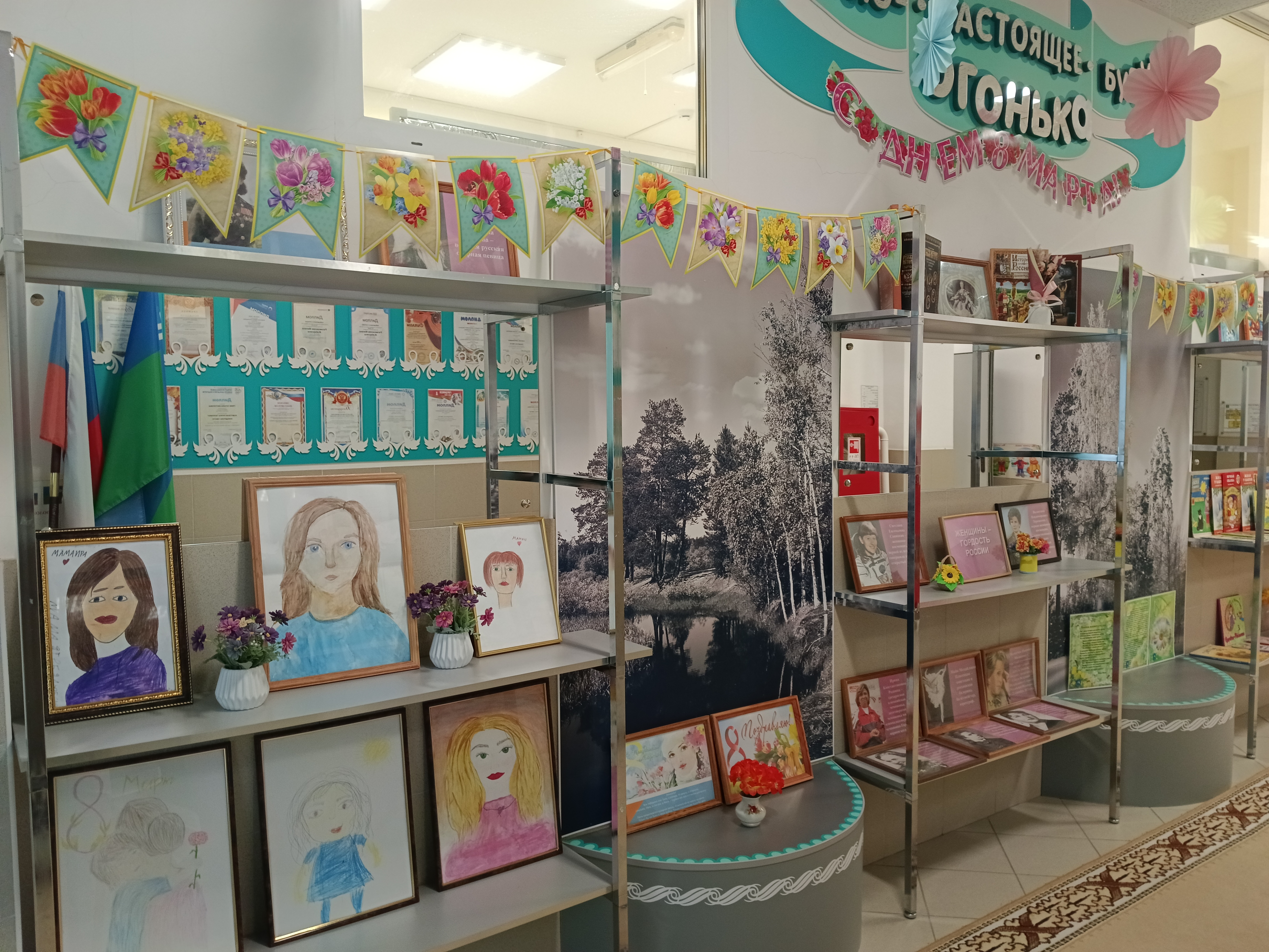 Работы воспитанников на выставке, посвященной Международному женскому дню.